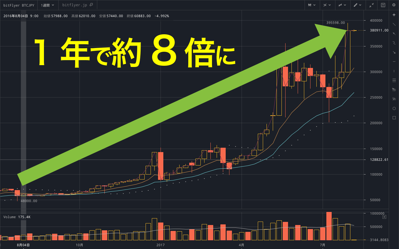 ビットコインの価値はこの1年で約8倍に膨れ上がっています。