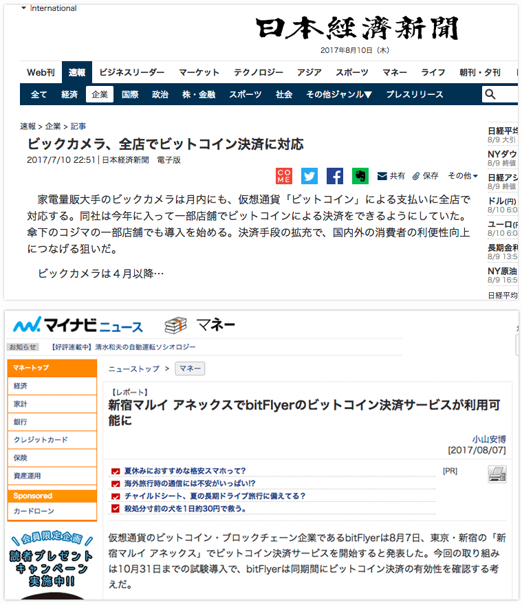 ビックカメラや丸井など多くの小売業がビットコイン決済を採用し始め、